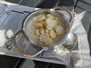 Up early, coffee in tow, race attire on and this witch was ready  to run.  The race was in downtown Salem at 8am so it wasn’t too busy yet. It was a bit chilly but not too bad. The course was great because it ran through downtown Salem. I met a few runners before who were locals and they told me where to go for lunch for of course, MORE Chowder!  Okay, time to run!!!  Nice race, a few hills but mostly flat.  Couldn’t wait to finish so I could head back up there to sight see and get lunch. I changed into a dry shirt and walked back into town to start my adventure.  The coolest part of this day was that it was packed with people and most of them in costumes. I hit a few shops right away and grabbed a few souvenirs. I then headed over to the area where the graveyard and memorials are where the girls were hung at the Witch Trials. It was very sad to see this.